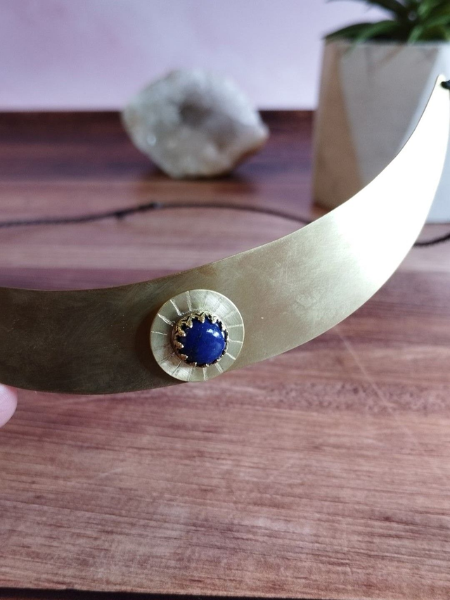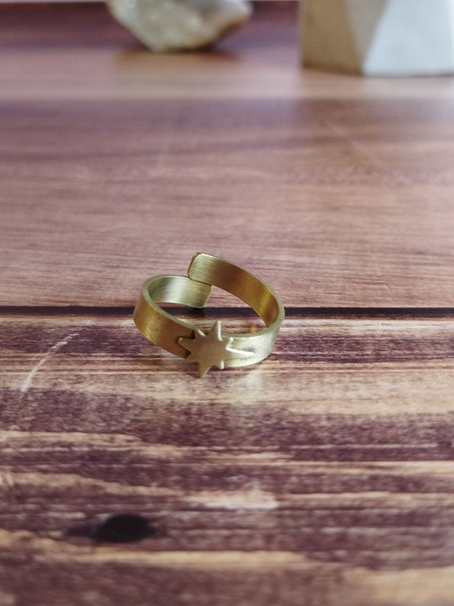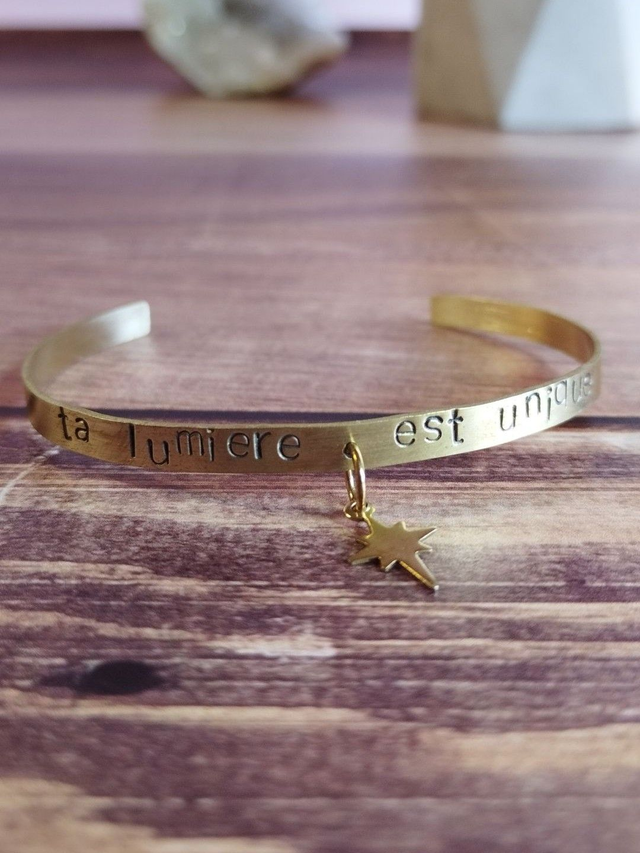 Une bague, un bracelet, un pin's et un collier en laiton brut (non plaqué, non verni)