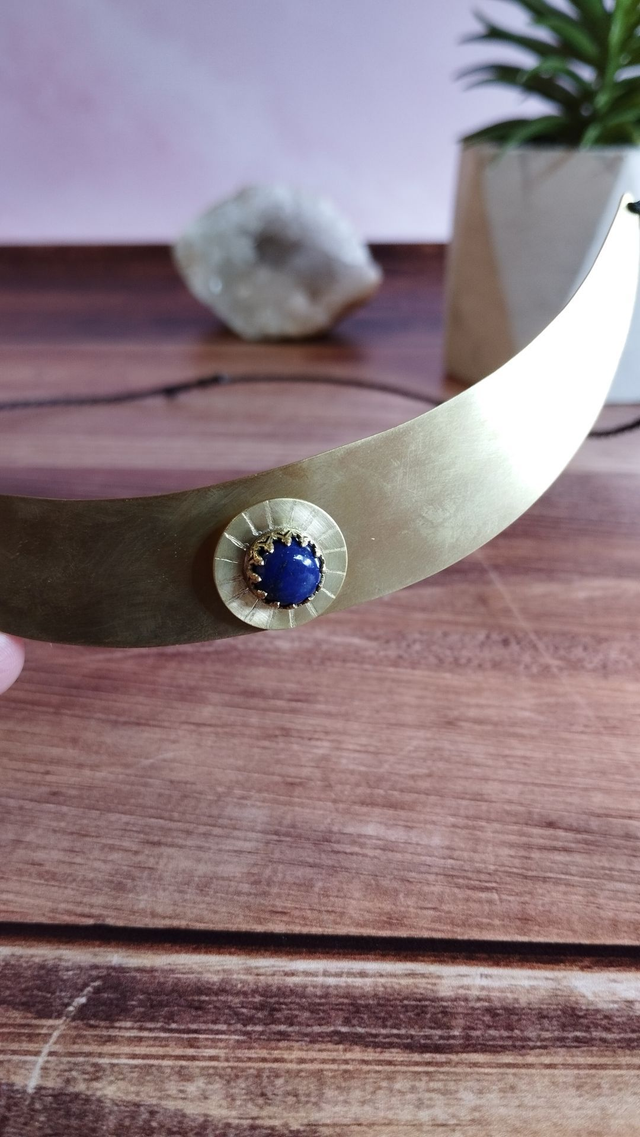 Une bague, un bracelet, un pin's et un collier en laiton brut (non plaqué, non verni)